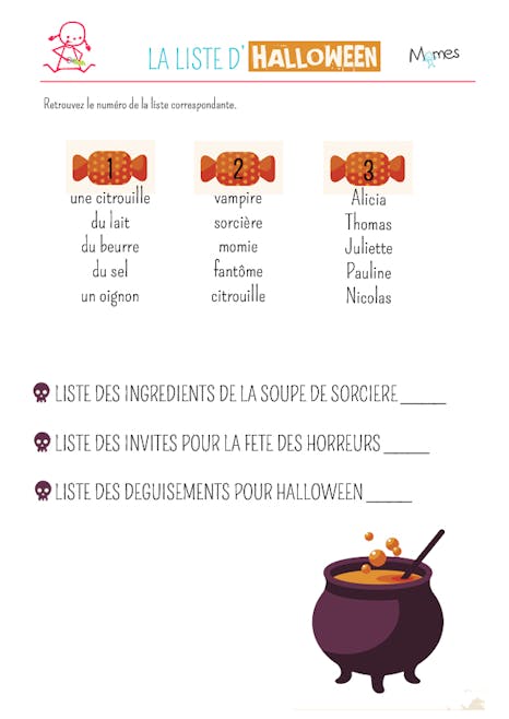 Exercice La Liste D Halloween Momes Net