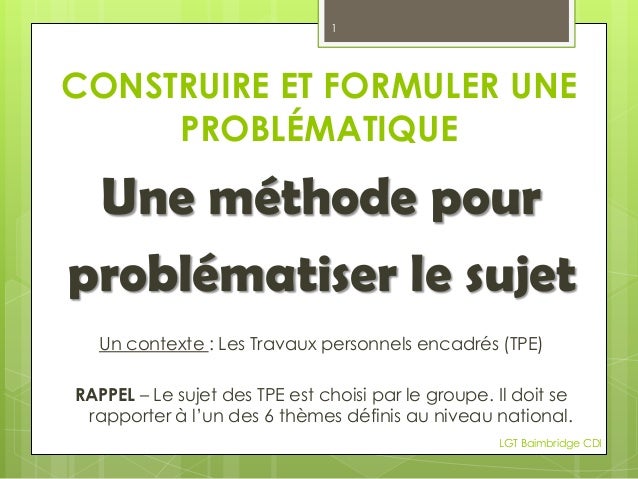 Construire Et Formuler Une Problematique