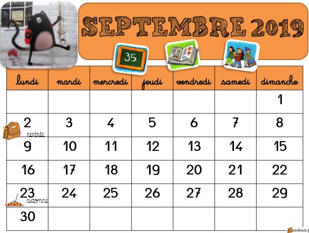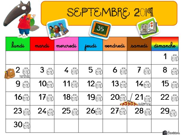 En Classe Avec Ludo Calendrier 19 Septembre Octobre Periode 1