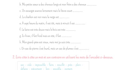 Les Mots De Sens Contraire Ce1 Exercice Francais Ce2 Exercice Cm1 Orthographe Ce2