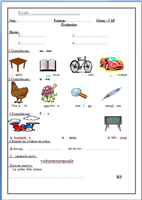 Evaluation De Francais 3eme Annee