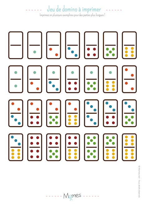Les plus cools des Jeux de dominos gratuits pour tout le monde !. Chaque joueur reçoit 7 dominos ou 6 dominos suivant le nombre de participants à la partie (7 dominos à 2 joueurs, 6 dominos à 3 ou 4 joueurs). Le soir venu, on laisse les jeux de côté pour passer à l'histoire, imprimez des cartes à contes et laissez l'imagination de l'enfant vaguer au fil des images.